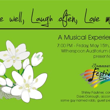 The Community Festival Chorale is a non-auditioned community choir. We accept singers high school and older. There are typically two concerts per year and some summer events. The Chorale is also part of the Winters Night fund raiser. Fall rehearsals will begin in September.